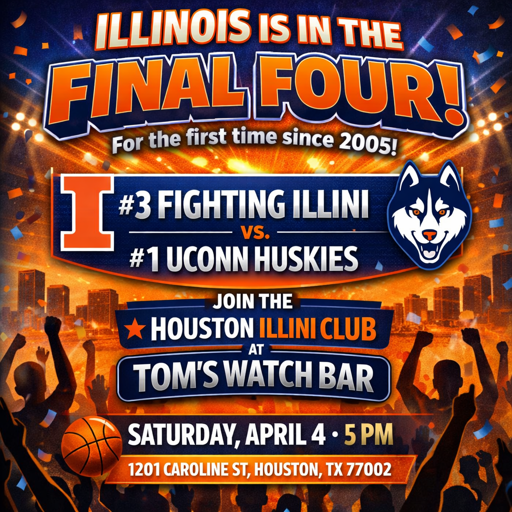 Join Houston Illini for #19 Illinois vs #18 Iowa basketball, Sunday, February 2nd, Noon at Coaches